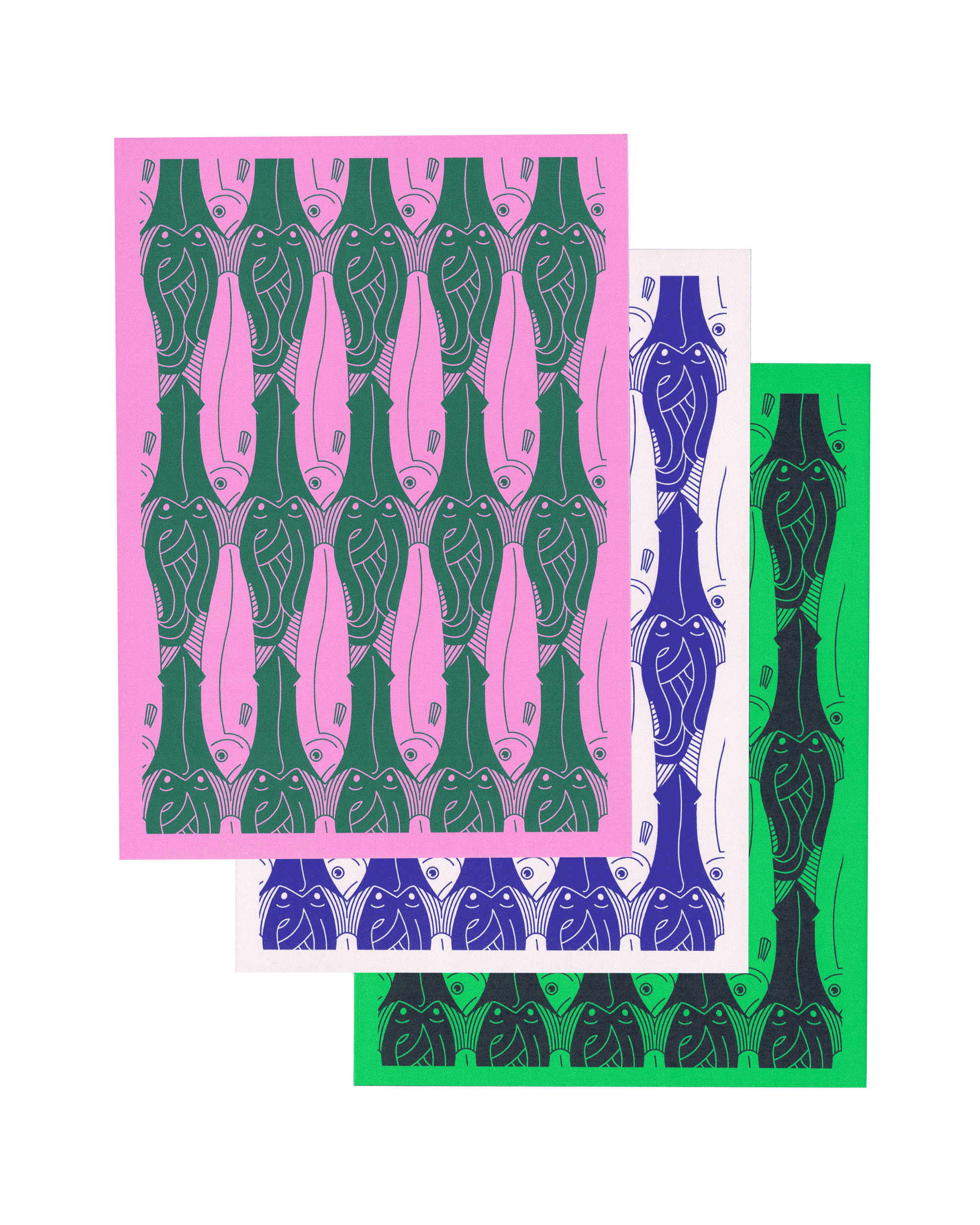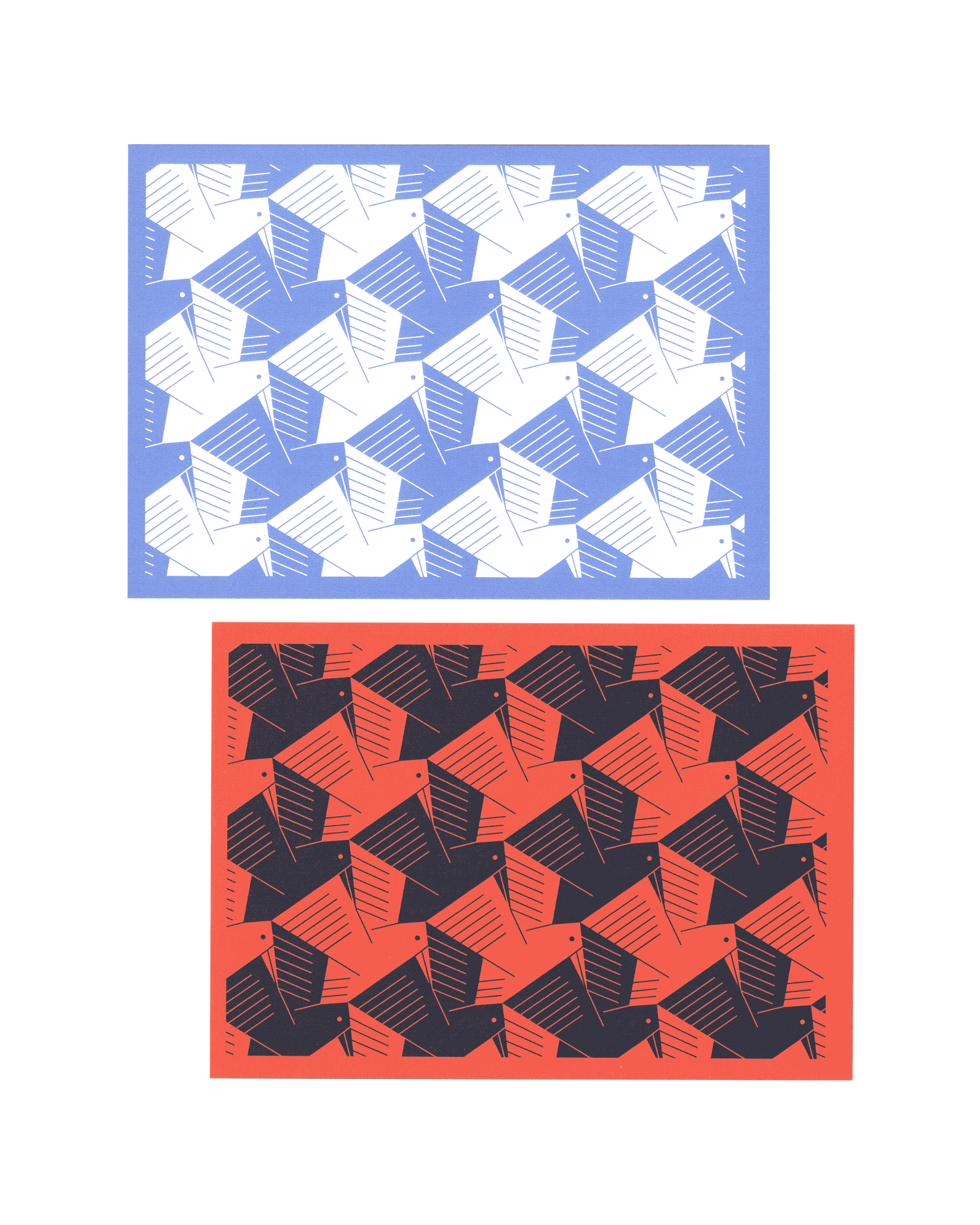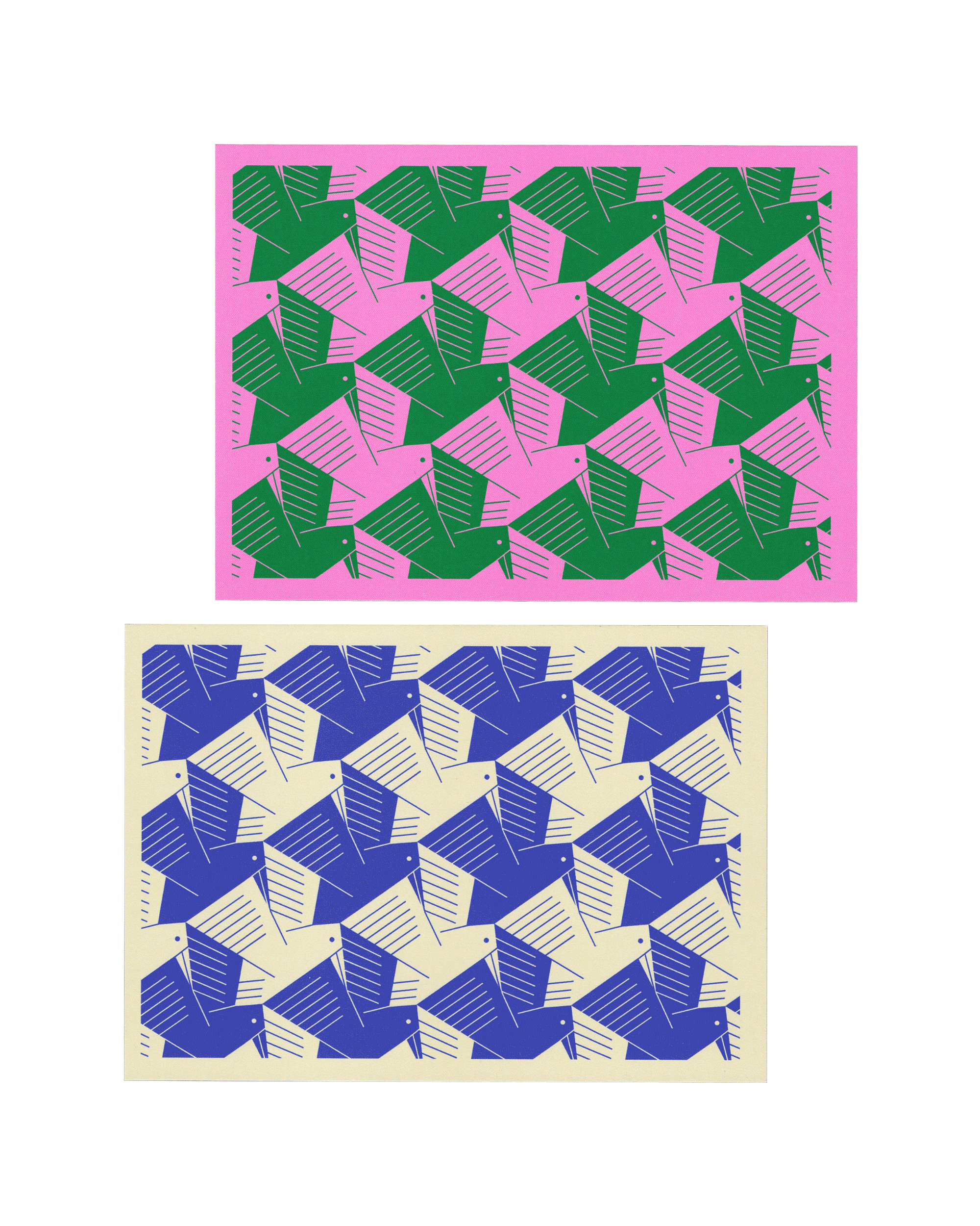 13 Escher & The Hague inspired A6 card designs, digitally printed on 400 offset natural cardboard.