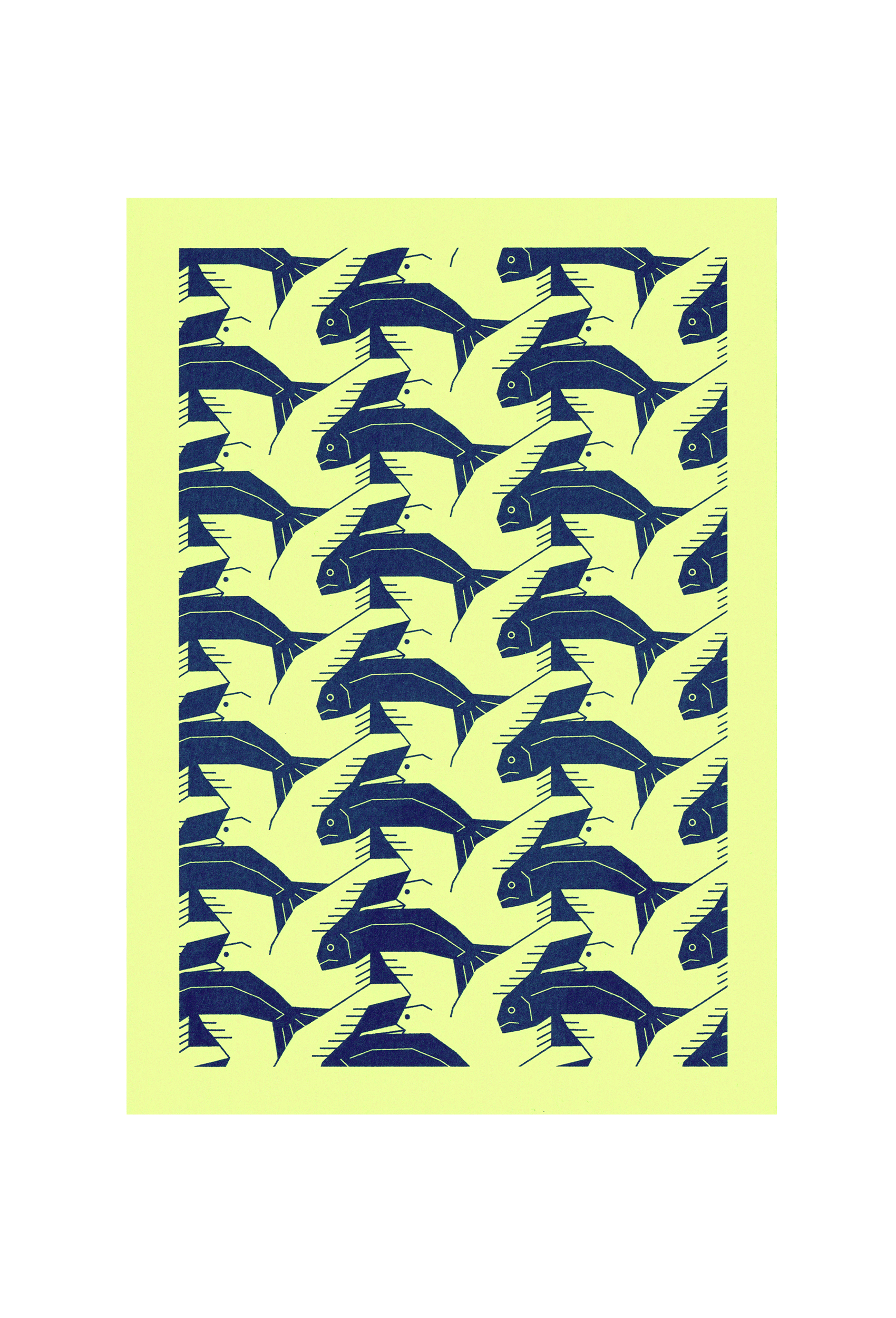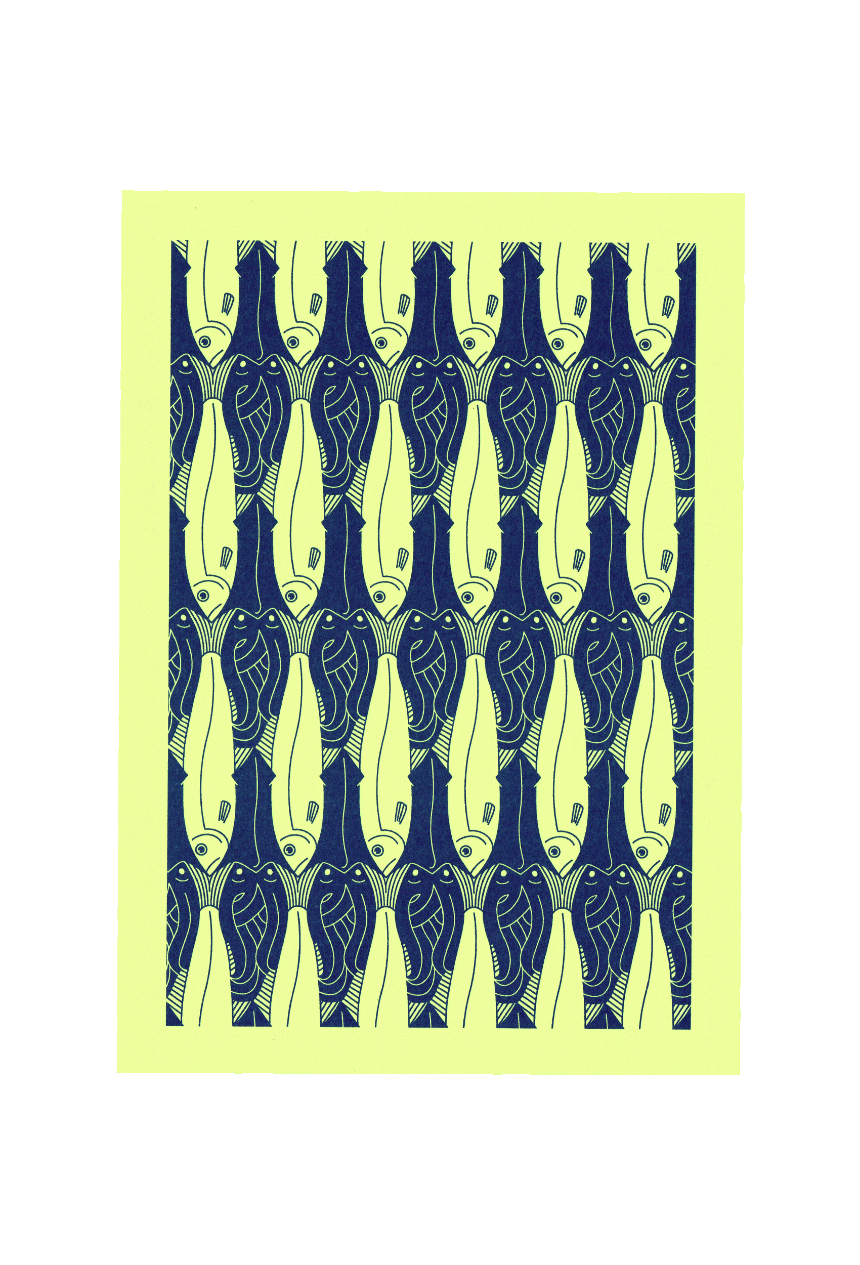 Set of two special edition Riso prints of our Escheresque herring prints. For Haringfest The Hague as part of the yearly New Herring celebrations.
